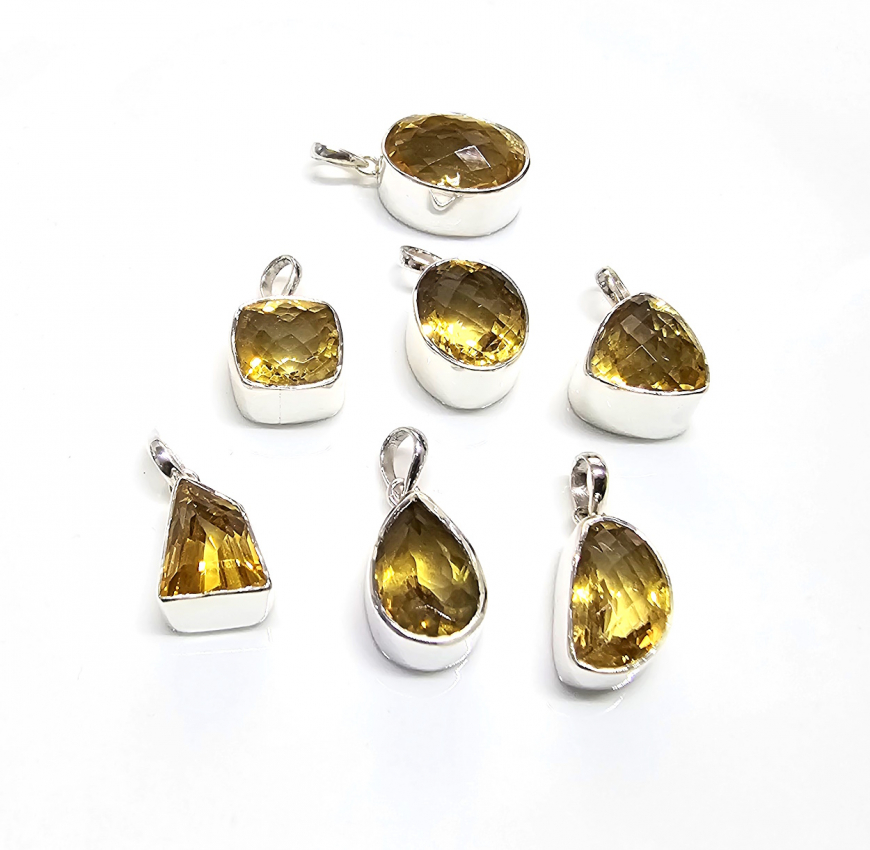 Citrin Anhänger A-Qualität facettiert massiv in 925 Silber gefasst ca. 20-30 mm