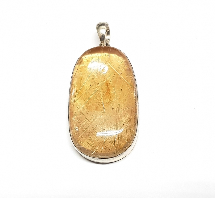Goldrutilquarz Anhänger massiv in 925 Silber gefasst ca. 76 x 35 mm - Einzelstück