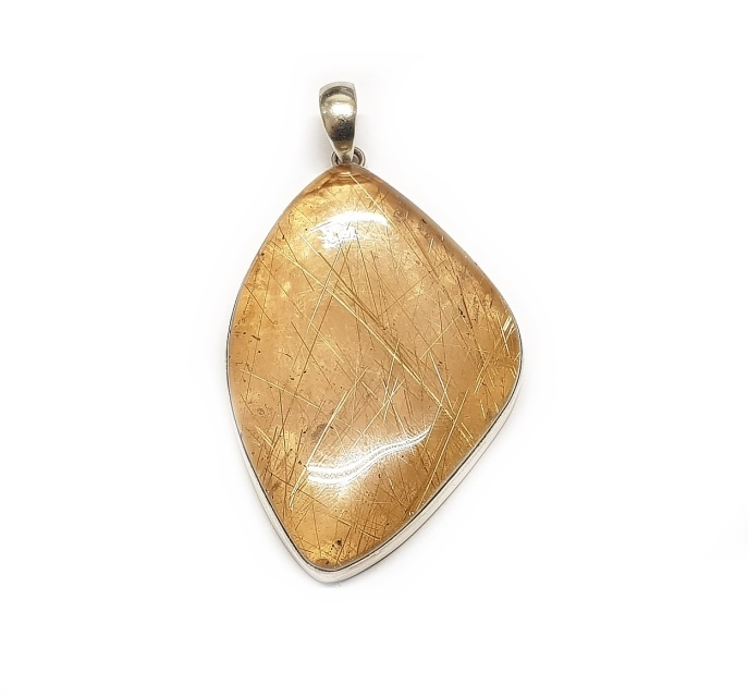 Goldrutilquarz Anhänger massiv in 925 Silber gefasst ca. 84 x 45 mm - Einzelstück