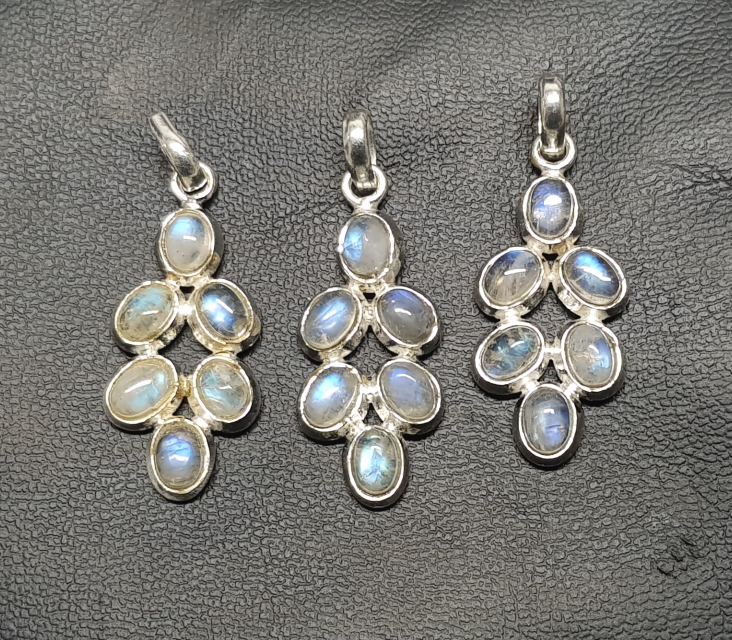 Mondstein Regenbogen A-Qualität Anhänger in 925 Silber ca. 45 x 17 mm / ca. 5-7 Gramm