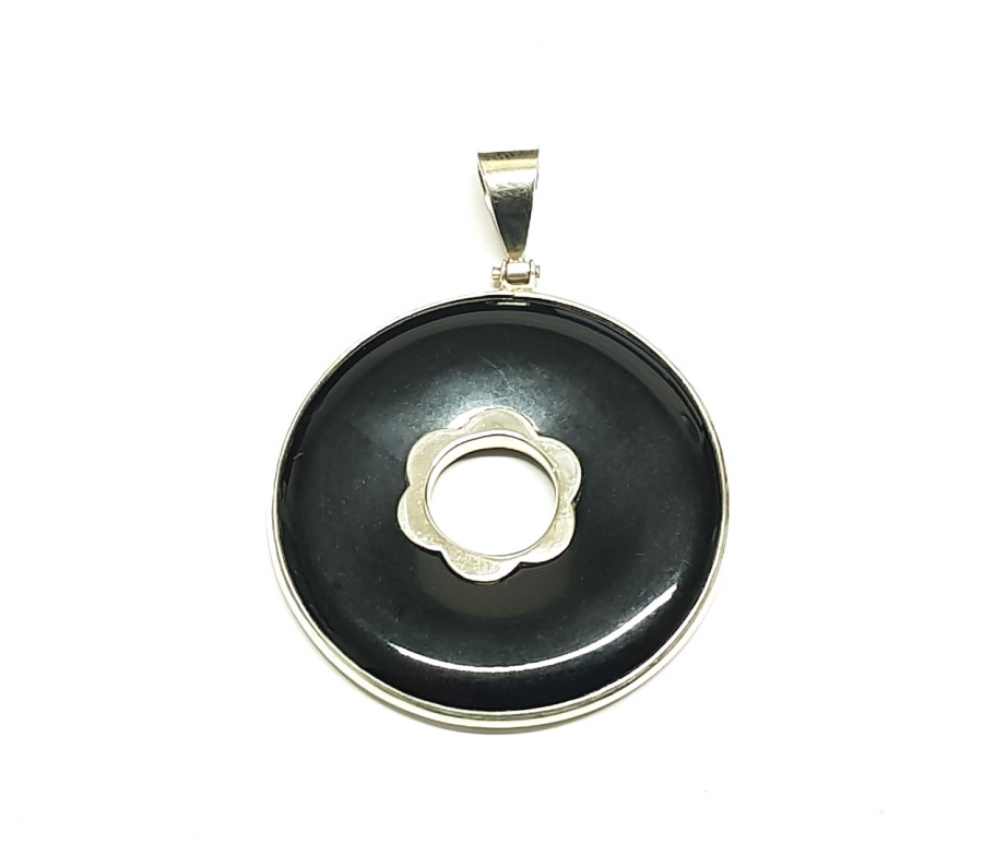 Onyx Donut - Anhänger verziert an 925 Silber ca. 50 x 40 mm
