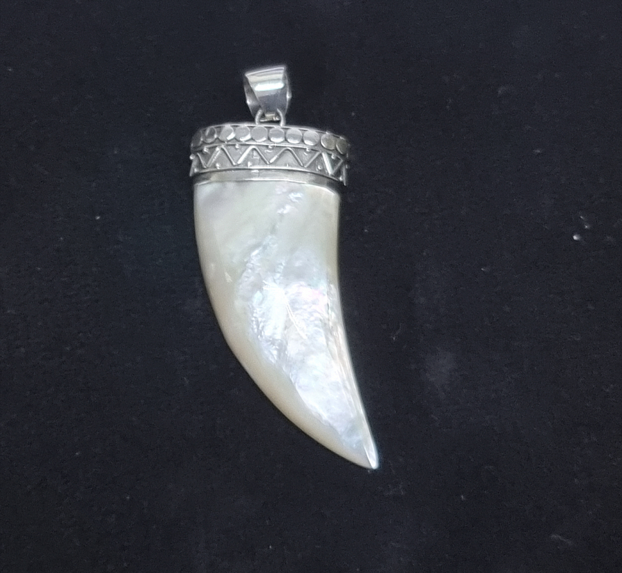 Perlmutt Anhänger Zahn in 925 Silber gefasst ca. 65 x 25 mm