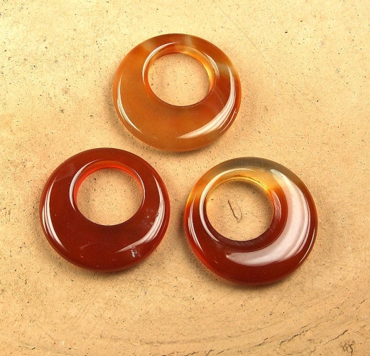 3er Set Rot - Achat Donut Anhänger 30 mm mit großem Loch ca. 15 mm