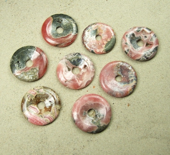Rhodochrosit Donut Anhänger ca. 37-42 mmSie erhalten einen Donut ähnlich wie abgebildetDurchmesser: ca. 37 - 42 mmBohrung: ca. 8 mm