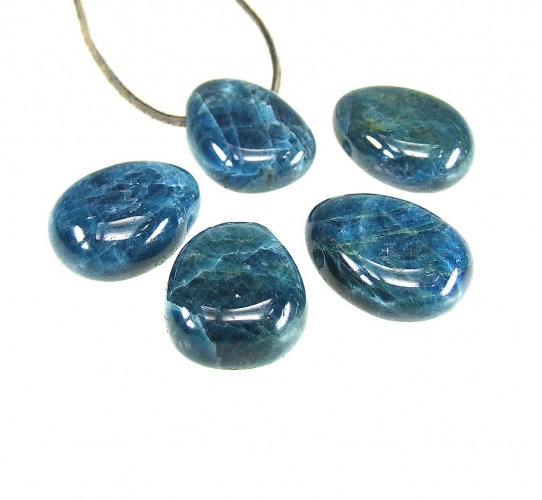 5er Set Apatit blau - gebohrter Trommelstein / Monatsstein Anhänger