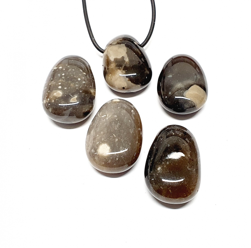 5er Set Flint / Feuerstein aus UK - gebohrter Trommelstein Anhänger Sie erhalten fünf Anhänger gleichwertig wie abgebildet Lieferung erfolgt ohne Lederband