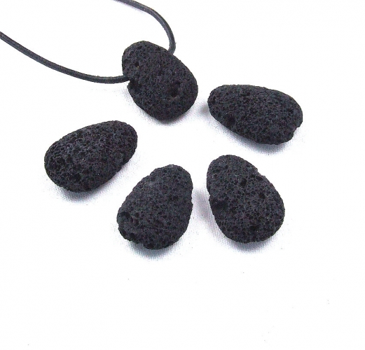 5er Set Lava schwarz - gebohrter Trommelstein Anhänger 2,5 mm Bohrung