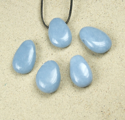 5er Set Angelit - gebohrter Trommelstein / Monatsstein Anhänger