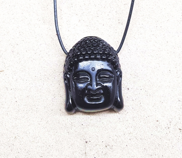 Buddha Kopf Anhänger aus Obsidian ca. 40 x 30 mm / 2mm Bohrung