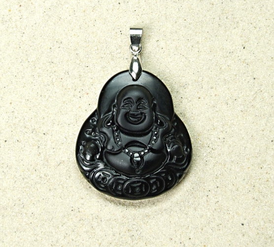 Obsidian Buddha Anhänger an Öse ca. 50 x 35 mm