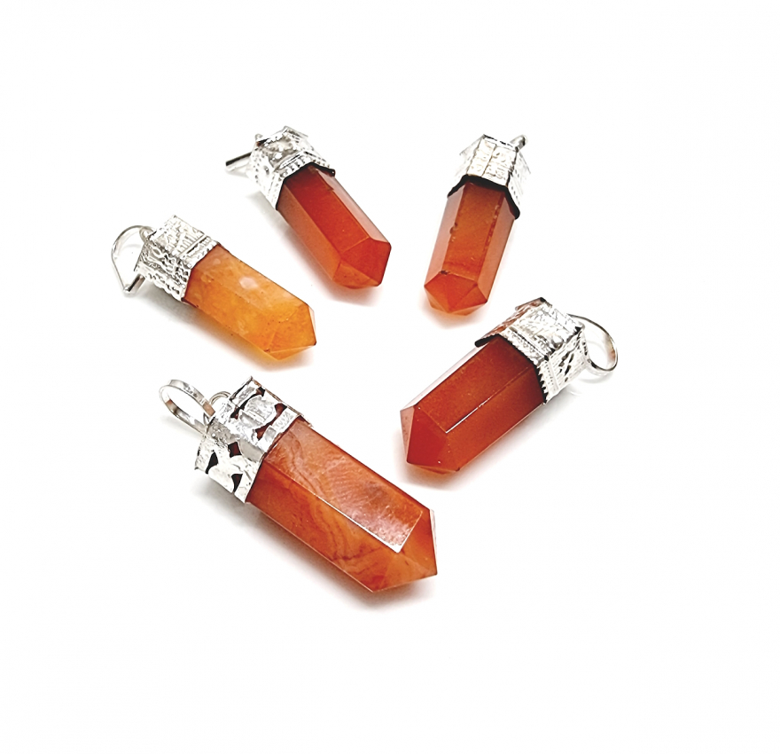 3er Set kleine Carneol Stab Anhänger Hexagonal mit Öse ca. 30 - 35 mm Sie erhalten drei Anhänger ähnlich wie abgebildet mit teils unterschiedlicher Kappe !