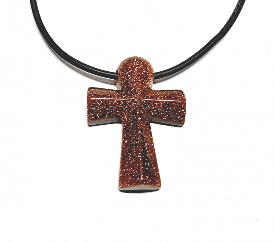 Kreuz Anhänger aus Goldfluss (syn.) ca. 25 x 35 mm mit 2,5 mm Bohrung