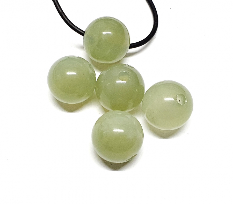 5 gebohrte Kugeln aus China Jade ( Sepentin ) ca. 18 mm / 3 mm Bohrung Sie erhalten fünf Kugeln ähnlich wie abgebildet Lieferung erfolgt ohne Lederband