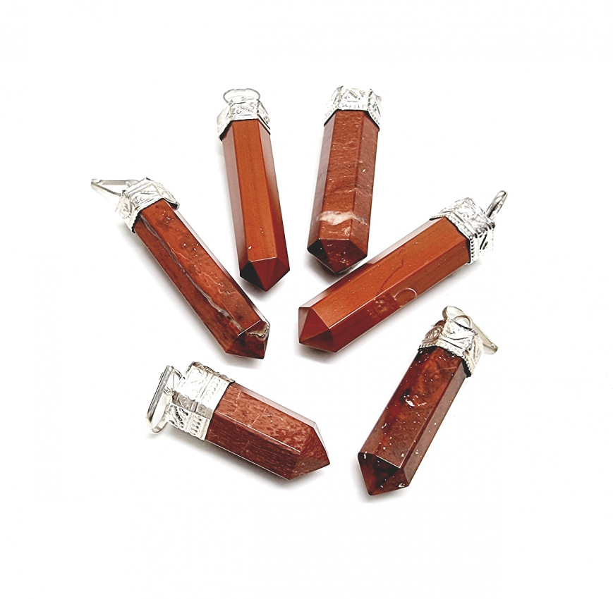 3er Set roter Jaspis Stab - Anhänger Hexagonal mit Öse ca. 35 - 50 mm Sie erhalten drei Anhänger ähnlich wie abgebildet mit teils unterschiedlicher Kappe !