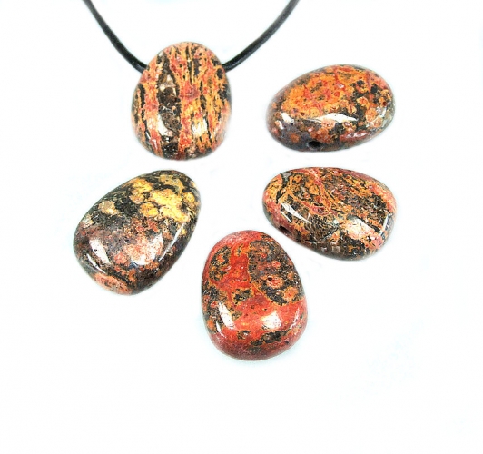 5er Set Leopardenjaspis - gebohrter Trommelstein Anhänger 3 mm Bohrung