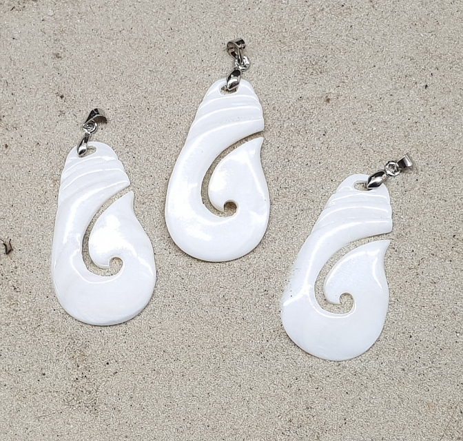3er Set Perlmutt Anhänger Maori-Haken ca. 50 x 23 mm