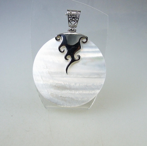 Muschel Anhänger rund an Öse verziert ca. 75 x 60 mm