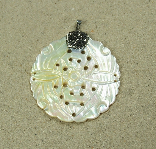 Perlmutt Anhänger mit Markasit Besatz ca. 60x50 mm
