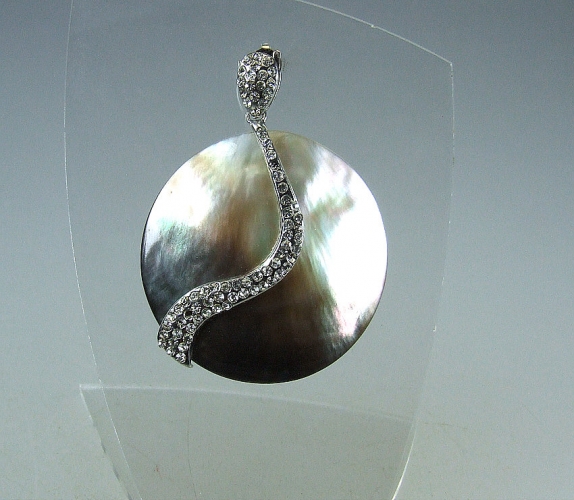 Regenbogenmuschel Anhänger mit Zirkonia an Öse ca. 52 x 40 mm
