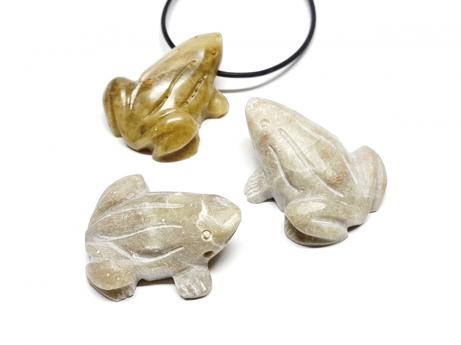 3er Set Frosch Anhänger aus Speckstein ca. 48x34 mm / 3 mm Bohrung