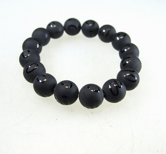 schwarzer Achat Kugelarmband graviert ca. 12 mm / 19-20 cm