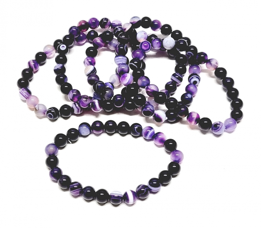 Streifenachat Lila (farblich behandelt) Kugelarmband ca. 8 mm / ca. 19 cm