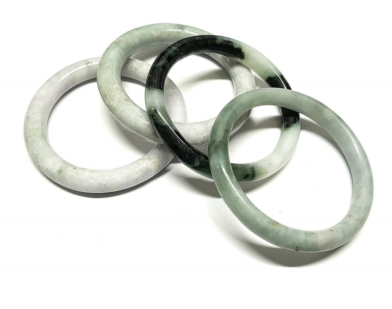 3 x Jadeit Armreif komplett abgerundet ca. 55-65 mm Innendurchmesser / 8-12 mm breit