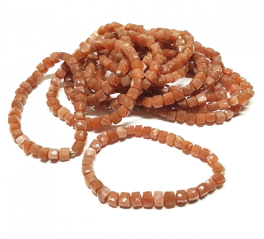 Mondstein Würfelarmband facettiert A-Qualität ca. 6-7 mm / ca. 18-19 cm
