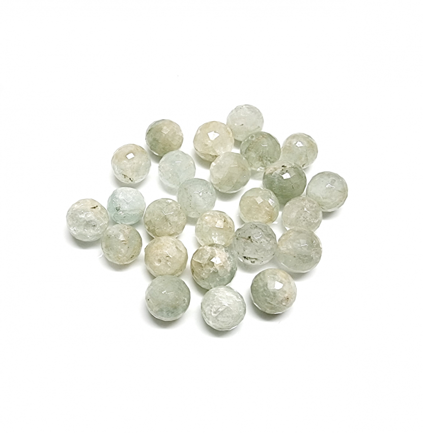 10 gebohrte natürliche Aquamarin Perlen rund facettiert ca. 11 bis 16 mm