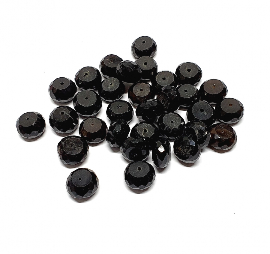 32 x schwarzer Spinell Perlen facettiert und gebohrt ca. 10x6 mm / 1 mm Bohrung