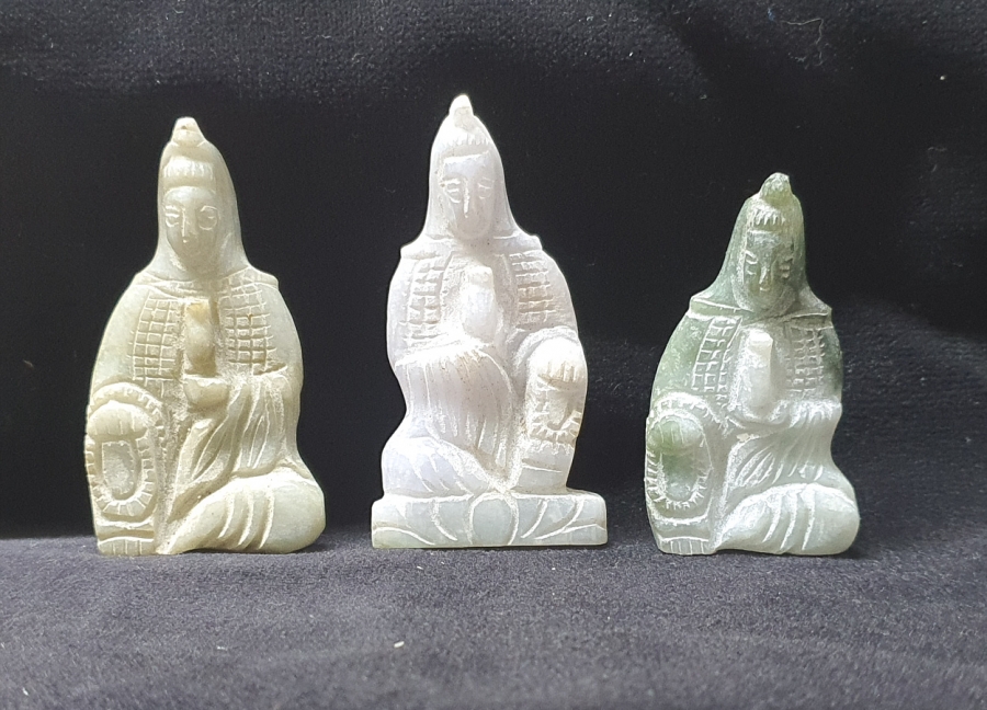 sitzende Guan Shi Yin Gravur aus Burma - Jade / Jadeit A/B Qual. Sie erhalten eine gleichwertige Figur wie abgebildet. Die Figuren sind mit oder ohne Podest je nach Ausführung Die Farbvariante reicht von Heller Jade bis dunkelgrüne und gefleckte Jade