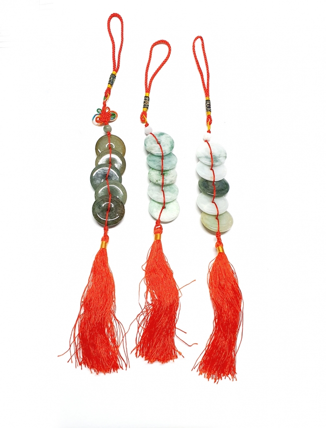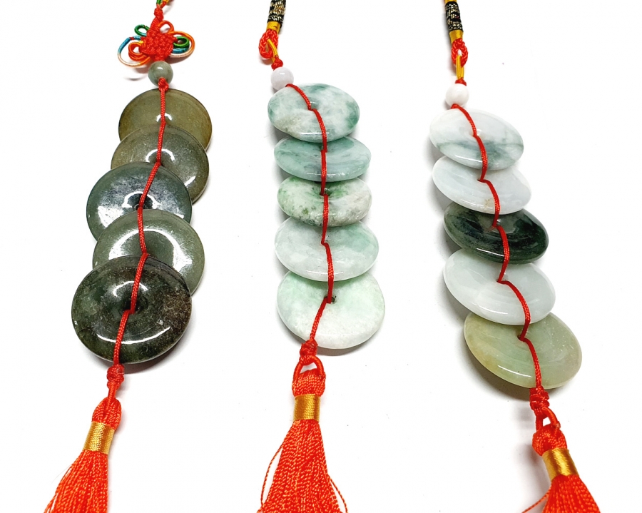 Feng Shui Glücksbringer mit 5 Jade Glücksmünzen ca. 30 mm / ca. 30 cm