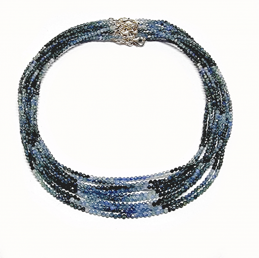 Saphir multicolor Halskette Kugel facettiert ca. 2,5 mm / ca. 45 cm mit 925 Silberkarabiner