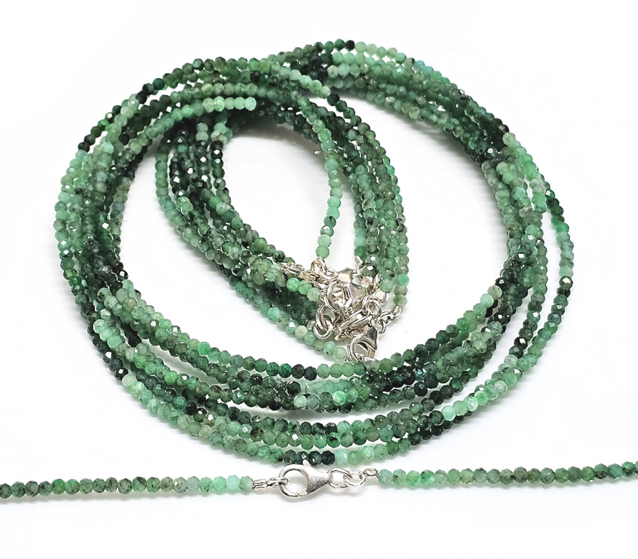 Smaragd Halskette Kugel facettiert ca. 3 mm / ca. 45 cm mit 925 Silberkarabiner