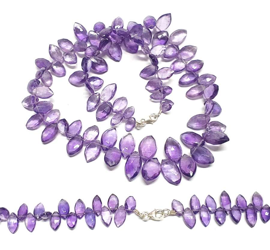 Amethyst Halskette Navette facettiert ca. 7-12 mm / ca. 44 cm mit 925 Silberkarabiner