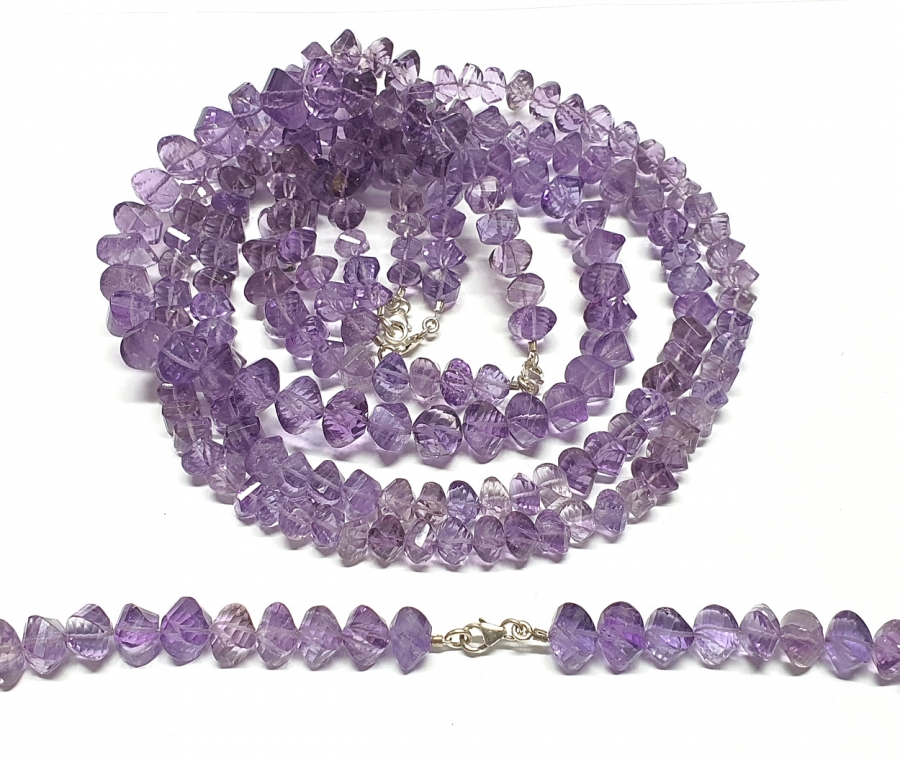 Amethyst Halskette facettiert ca. 7-9 mm / ca. 45 cm mit 925 Silberkarabiner