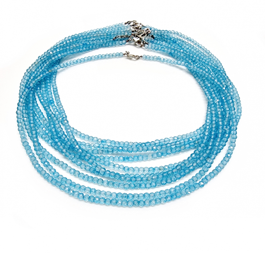 Apatit Halskette Kugel facettiert ca. 4 mm / ca. 45 cm mit 925er Silberkarabiner