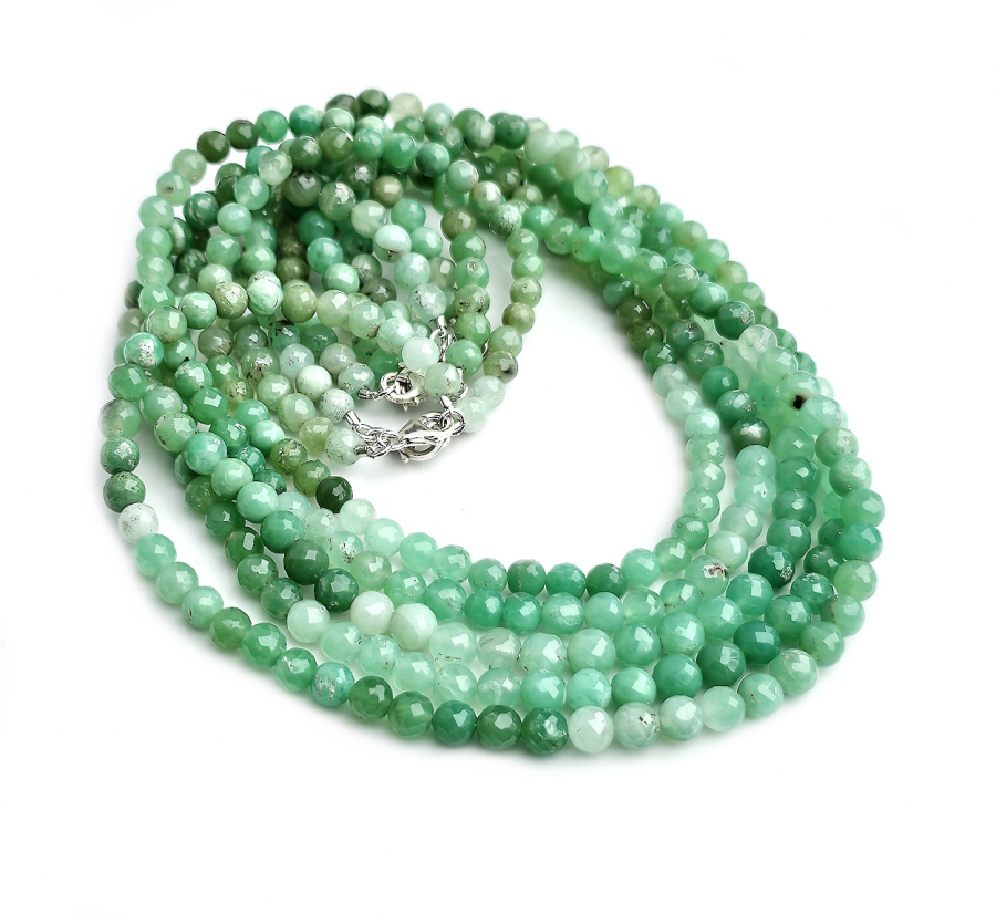 Chrysopras Halskette Kugel facettiert ca. 5 - 6.5 mm / ca. 45 cm mit Silberkarabiner