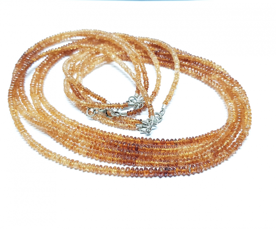Mandaringranat Halskette Button Farbverlauf ca. 3 - 4 mm / ca. 45 cm mit Silberkarabiner