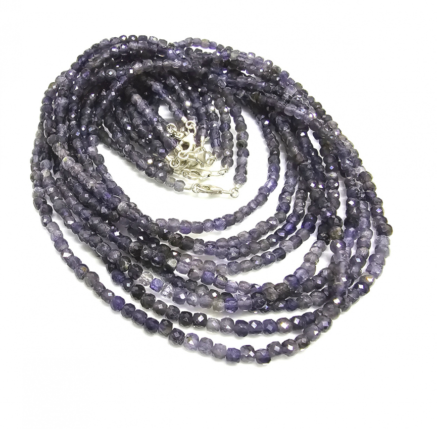 Iolith Halskette Würfel facettiert ca. 4 mm / ca. 45 cm mit 925er Silberkarabiner