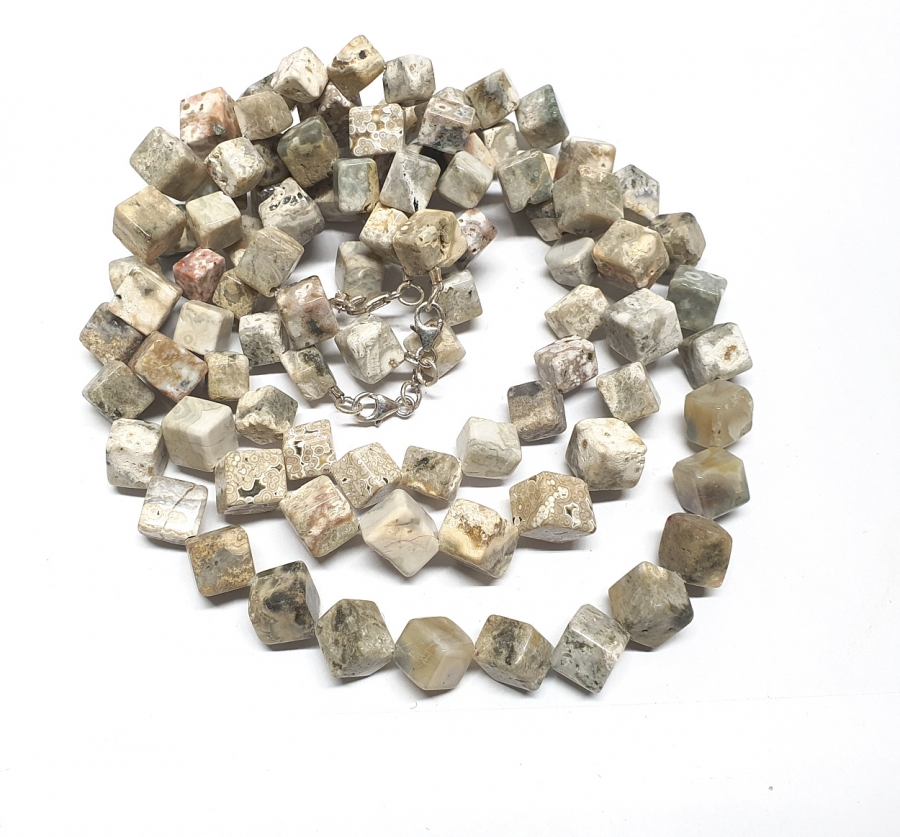 Ozeanjaspis Halskette Würfel gedreht ca. 8-11 mm / ca. 45 cm mit Silberkarabiner - Sonderposten
