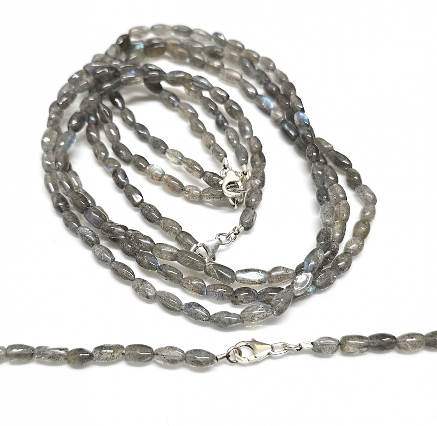 Labradorit Halskette Olive ca. 4-5 mm / ca. 45 cm mit 925 Silberkarabiner - Sonderposten