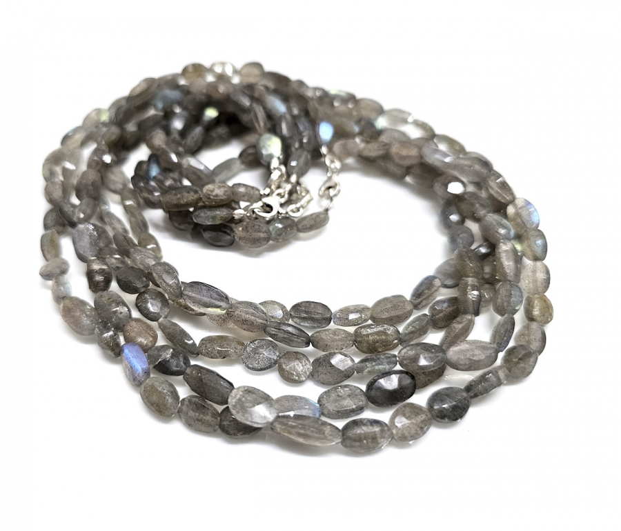 Labradorit Halskette facettiert ca. 6-7 mm / ca. 45 cm mit 925er Silberkarabiner
