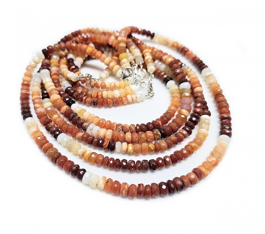 Feueropal Halskette Button facettiert ca. 6-7.5 mm ca. 45 cm mit 925 Silberkarabiner
