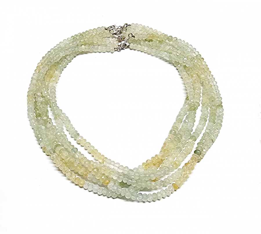 Prehnit Halskette Button facettiert ca. 5-7 mm / ca. 45 cm Silberkarabiner