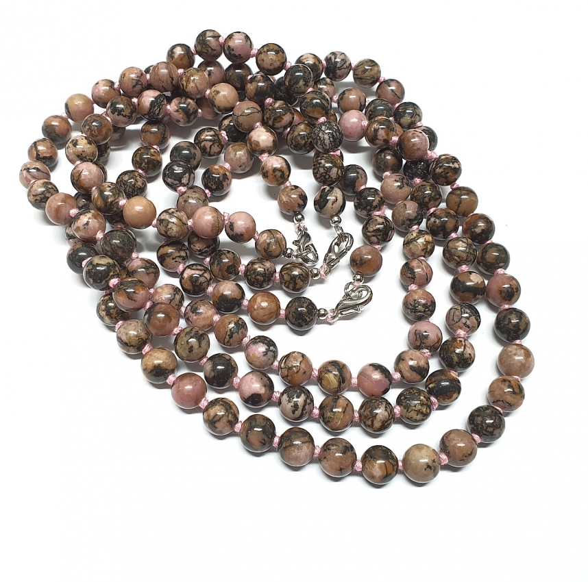 Rhodonit Halskette einzeln geknotet ca. 8 mm / ca. 50 cm