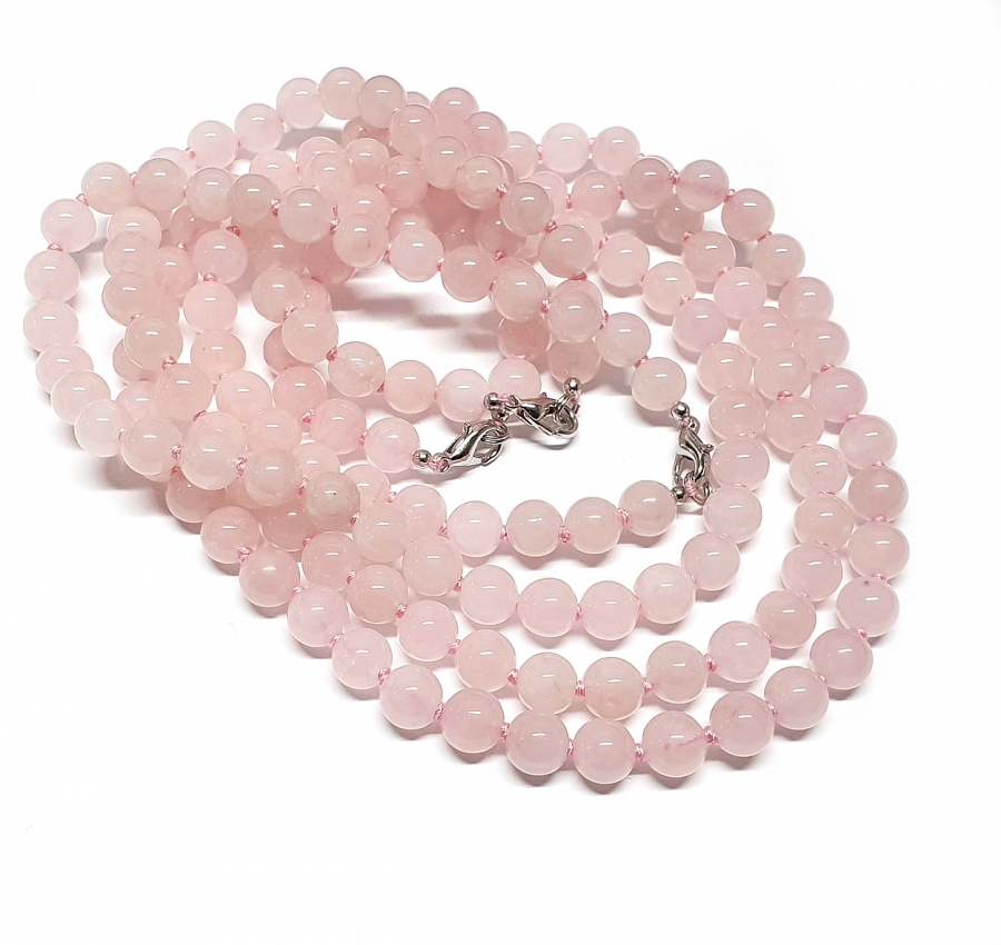 Rosenquarz Halskette einzeln geknotet ca. 8 mm / ca. 50 cm