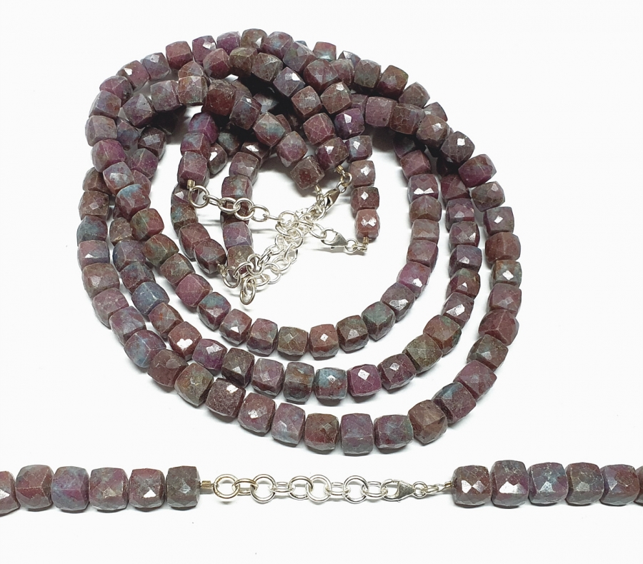 Rubin-Disthen Halskette facettiert ca. 7-8 mm / 43-49 cm mit 925 Silberkarabiner