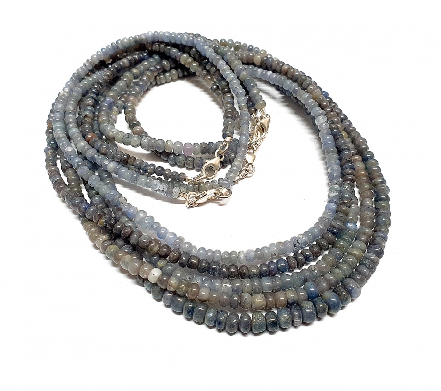 Saphir Halskette Button A/B Qual. ca. 3 - 5 mm / ca. 45 cm mit 925 Silberkarabiner