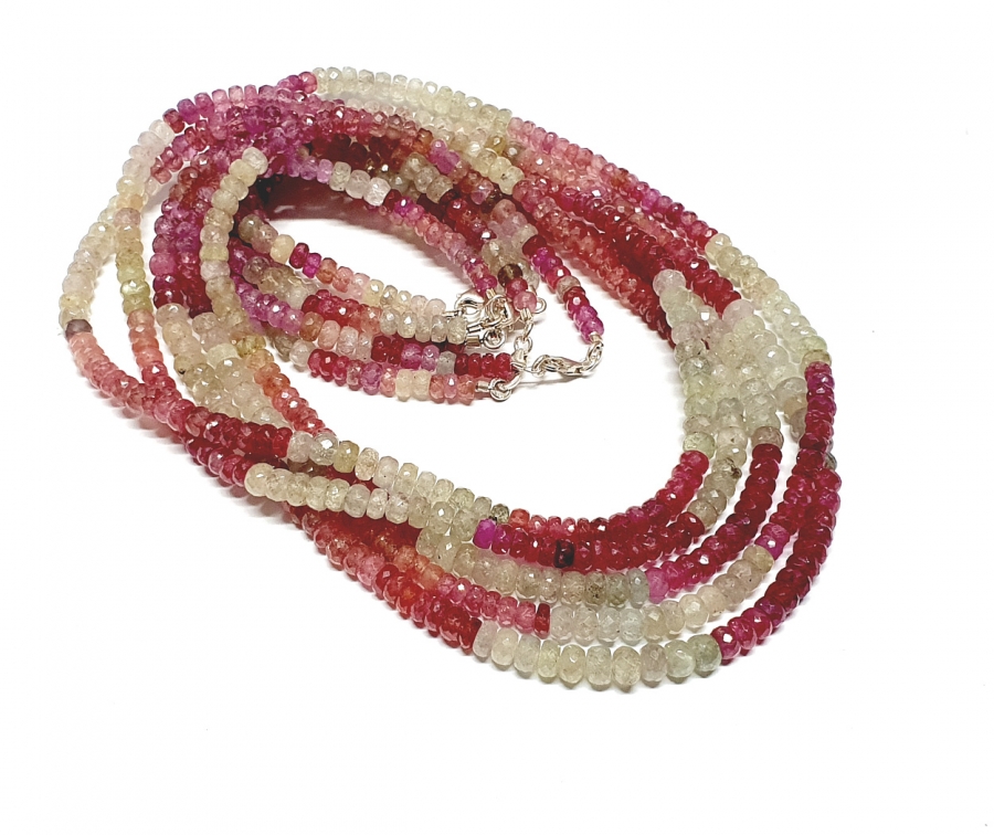 Saphir pink Halskette Button facettiert ca. 4 - 5 mm / ca. 45 cm mit 925 Silberkarabiner